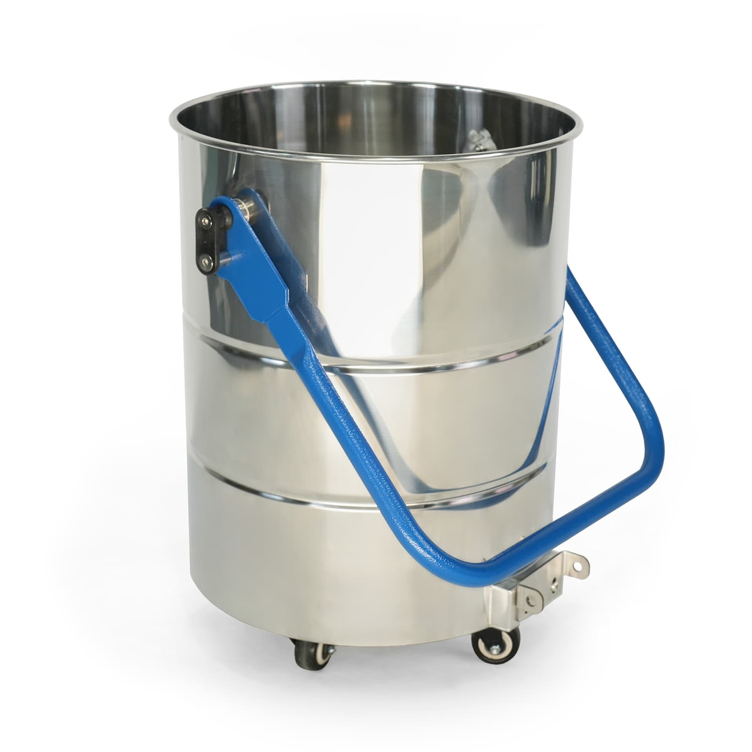 Мобильный бак из нержавеющей стали объемом 70 литров в сборе с ручкой и роликами. Диаметр 360 мм.